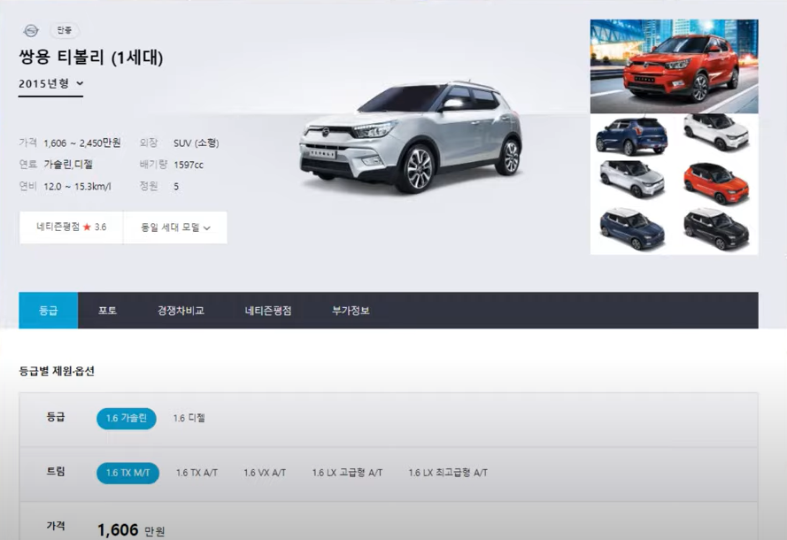 모두 아이신 6단 변속기가 탑재되어 있습니다 마지막으로 가장 중요한 것 가격 정말 궁금하시죠 1.6L 가솔린 모델은 1883만원부터 시작합니다 무려 7년 전 출시 가격과 거의 차이가 없는데요이 정도면 물가 상승을 거의 반영 안했다고 봐도 되겠습니다. 아주 kg모빌리티가가 작정을 했네요.