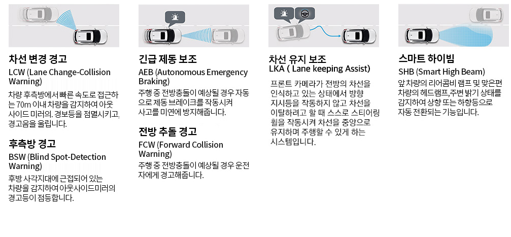 실내 디자인 역시 많은 변화가 있는데요 이전 모델이 오래되다 보니 투박한 느낌이었는데 센터페시아 프레임의 디자인이 플로팅으로 변경되었으며 터치식 공조기가 추가되었습니다. 또한 안전기술  컨트롤 긴급 제동 보조 시스템 전방 추돌 경고 차선 이탈 경고등 14개 보조 시스템을 추가하여 주행 안정성을 높였습니다.