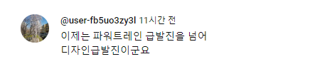 뒷모습이 그래도 좀 알차 보이고 단단해 보이잖아?라고 이야기하시는 분들 많고 그러면서도 옆이 너무 직선으로 쭉 이어지다 보니까 특히 윈도우 쪽 블랙으로 처음부터 끝까지 어떤 기울어짐이나 이런 거 없이 루프 쪽은 뒤로 좀 기울였는데 뭐 아무튼 너무 길어 보이는 게 좀 문제야라는 반응들이 꽤 많이 있습니다.