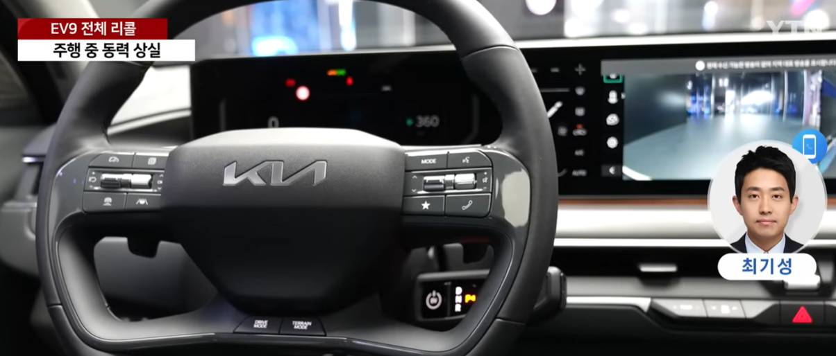 전기차 EV9이 주행 중 동력 상실과 관련해 기아가 현재까지 생산한 EV9 차량을 전량 리콜 하기로 했습니다.  국토부 담당자는 이번 결정 배경을 안전상 문제 때문이라고 말했습니다. 도로를 달리다 멈추는 현상이 중대한 제작 결함이라고 교통당국도 판단한 겁니다.
