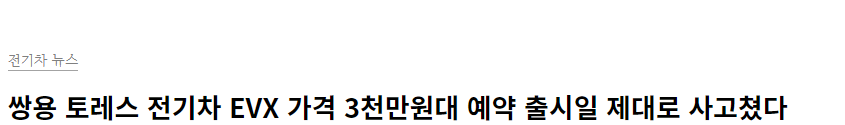 한편 기아 EV9의 빈자리를 노리고 있는 구 쌍용 KG모빌리티는 토레스의 성공 DNA를 계승한 중형 전기 SUV '토레스 EVX'를 9월 출시한다고 합니다. 당초 11월쯤 출시될 예정이었지만 시장 공략을 서두르기 위해 판매 시점을 앞당겼습니다.
