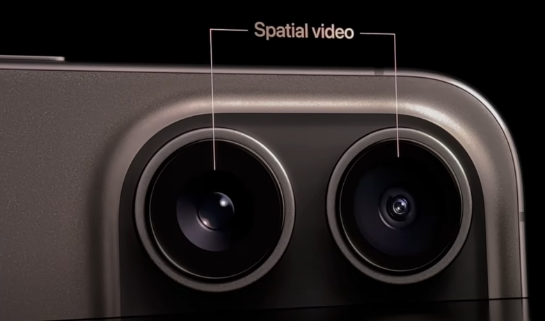 마지막으로 아이폰 15 프로는 비전 프로를 위한 공간 비디오를 촬영할 수 있게 됩니다 초광각 카메라와 메인 카메라를 사용해서 3D 비디오를 담게 되는데요이 기능은 추후에 업데이트로 지원될 예정입니다.