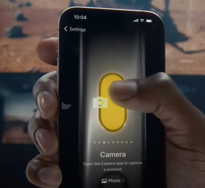 측면 스위치 방식이 이제 새로운 액션 버튼으로 대체됩니다 여러 가지 기능을 이제 선택해서 할당할 수가 있는데요 카메라나 손전등 설정 화면에서 이렇게 고를 수 있는데 단축어와 연결해서 빠르게 기능을 실행할 수도 있게 됩니다.