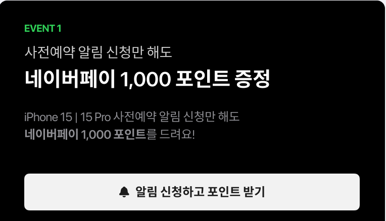 아이폰 15 사전예약 알림 신청하고 네이버페이 1,000 포인트 받기