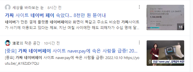 네이버의 결제 플랫폼 네이버페이 이 네이버페이와 화면도 똑같고 주소도 거의 비슷한 가짜 사이트가 사기에 이용되고 있다고 합니다. 벌써 며칠 사이에만 피해자가 수십 명이 발생을 했다고 하는데요.