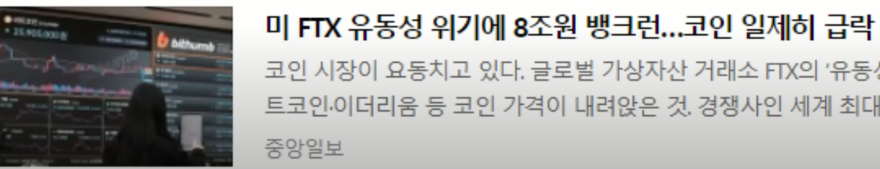 금융 당국에 따르면 개인들이 FTX 측 가상화폐에 투자한 금액은 23억원이라고 합니다. 국내 게임엄체 컴투스는 자사 발행 코인인 'C2X'를 FTX를 통해 상장했습니다. 컴투스의 C2X 상당량이 FTX에 묶여 있을 거란 예측이 나오고 있습니다. 외신들은 FTX 사태를 2008년 글로벌 금융위기에 비교하며 FTX 파산 여파가 글로벌 금융시장으로 확대될 조짐도 보인다고 지적했습니다.