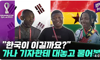 아프리카 국가답게 흐름을 타면 순간적으로 경기 분위기를 잡아갔지만 뜻대로 풀리지 않을 경우 자멸하는 모습을 보였습니다. 이런 가나를 상대하기 위해서는 한국이 더 냉정해야만 합니다. 반면 한국팀은 상대적으로 가나에 많이 알려져 있는데요 최근 훈련장에서 만났던 가나 대표팀 스태프 오토마크는 한국은 4년 동안 같은 감독 같은 시스템으로 운영해 왔다며 어떤 축구를 하는지 알아내는 건 큰 문제가 되지 않았다고 자신감을 표했습니다.