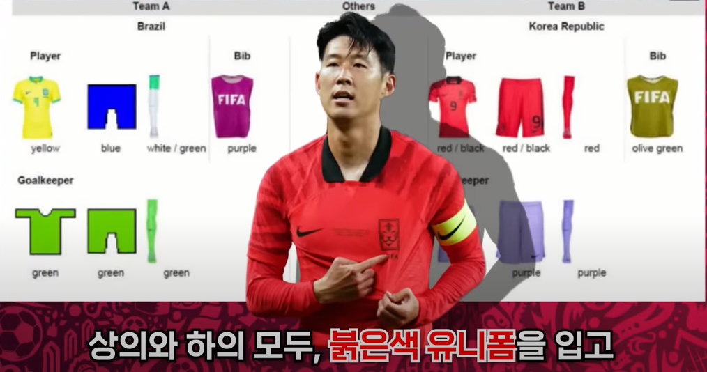 마지막으로 한국은 브라질과 16강에서 상위와 하에 모두 붉은색 유니폼을 입고 브라질은 노란색 유니폼을 입게 됩니다.