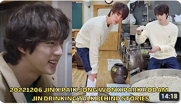 그렇게 술을 좋아하는 마음은 점점 커져 술을 빚는 마음이 되었습니다. 백종원 대표는 취중진담에서 진이 자기 술 브랜드를 만들기로 했다.. 입대를 앞둔 진이 술을 빚는 양조장을 만들고 입대를 하면 그 기간 동안 술은 익어가고 진은 자신이 만든 술을 자신의 양조장 브랜드에서 합법적으로 나누어 줄 수 있게 되었다.