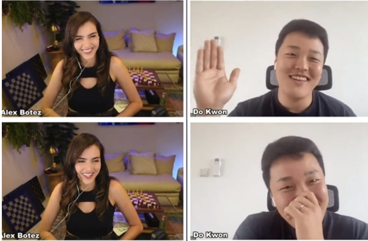 그런데 놀랍게도 이 발언은 1주일 뒤 테라,루나의 몰락을 정확히 예고한 발언이 되었습니다. 권씨의 체스닷컴 인터뷰는 인터넷방송 플랫폼 트위치상에서 화상 회의 형식으로 이루어졌습니다. 인터뷰어는 미국의 유명한 체스 선수 겸 유튜버인 알렉산드라 보테즈. 보테즈는 권씨에게 '가상화폐 기업이 향후 5년간 얼마나 남을 것이라고 보느냐."는 보태즈의 질분에 웃으며 손사례를 치며 95%는 몰락할 것이라. 하지만 그걸 지켜보는 일도 재미있을 것." 이라고 말을 했습니다.