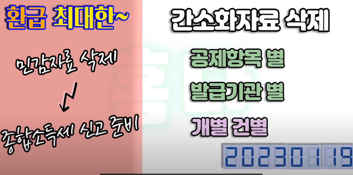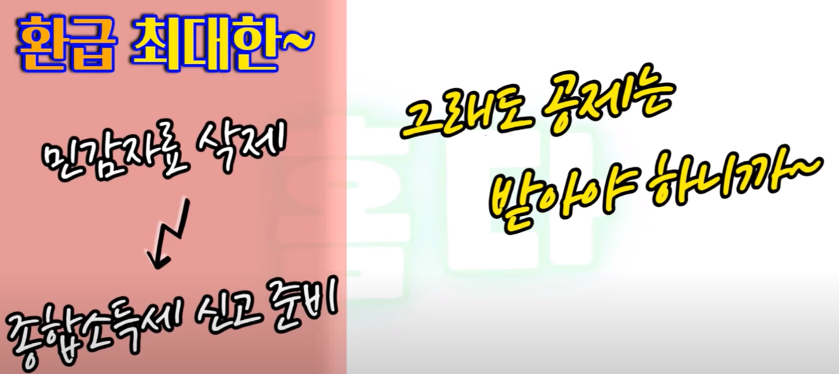 그러니까 민감자료를 삭제 할 때는 해당 증빙자료를 직접 확보해 두고 다음 해 5월에 종합소득세 신고를 할 준비를 해두면 개인적인 프라이버시도 지키고 환급도 모두 챙길 수 있게 되니까요 잊지 말고 기억해 두면 좋을 것 같습니다.