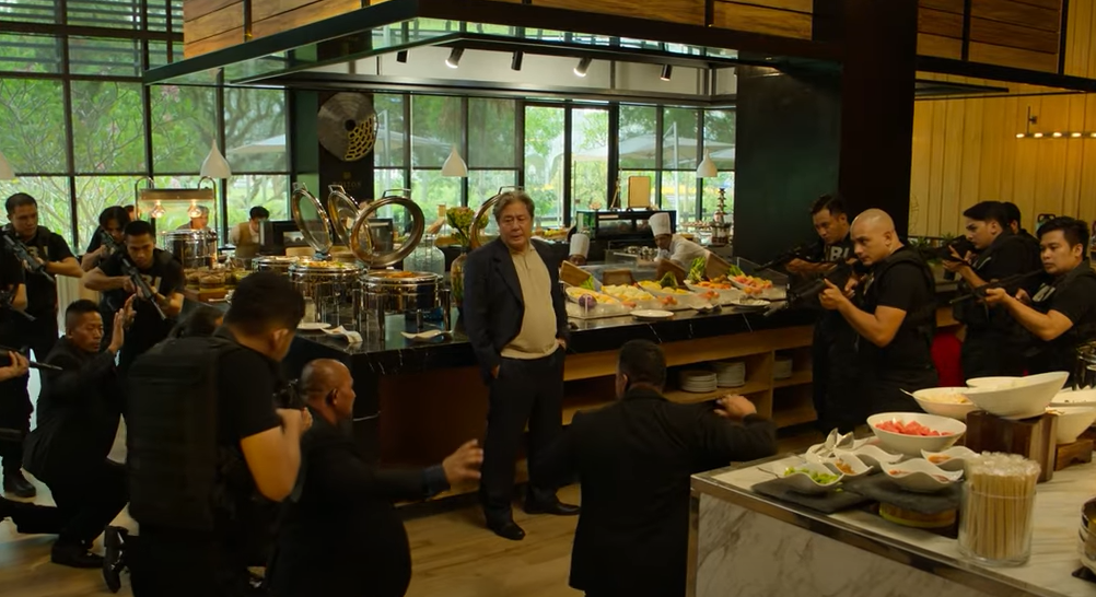 그러던 중 무식은 김정은이 북한에 카지노를 만든다는 정보를 들고온 영사측이 사주한 사람을 호텔에서 만나기로 약속을 잡게 됩니다...그리고 무식이 호텔에 도착한 후...호텔로 들어오는 검은색 차량..바로 NBI 였습니다...무식이 호텔에 있다는 정보를 사전에 입수하고 무식을 체포하러 온거였죠..