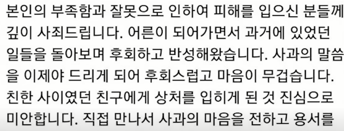 또한 상해 사건의 피해자를 향해 친한 사이였던 친구에게 상처를 입히게 된 것 진심으로 미안합니다 직접 만나서 사과의 마음을 전하고 용서를 구하겠습니다며 본격적인 사과를 시작했습니다.
