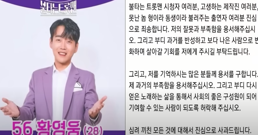 황영웅은 사과문 등장