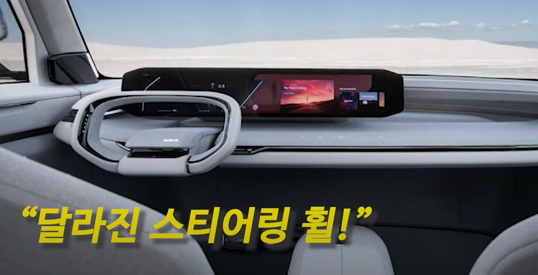 콘셉트에서는 중앙이 빈 형태의 타원형과 같은 위와 아래가 좁은 디자인이었습니다. 파노라마 디스플레이는 양쪽 모서리를 다이아몬드처럼 이쁘게 다듬어 놓았죠 하지만 양산차에서는 좀 달라졌는데요 전기차 같은 새로운 느낌보다는 최신 내연기관차량처럼 좀 익숙한 느낌이네요.