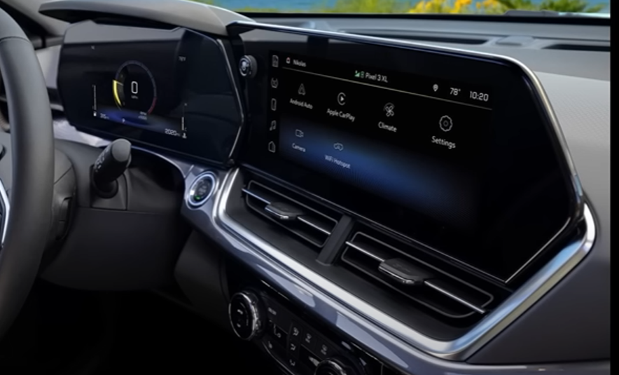 신형 트랙스 크로스오버에 익스테리어도 놀라운 부분이었는데 인테리어는 그의 못지않은 혹은 그 이상의 놀라움을 보여주고 있습니다. 일단 커다란 듀얼 와이드 스크린이 가장 먼저 눈에 띄는데요.. 두 개의 스크린은 운전자 중심으로 콕핏 구조로 설계되어 있어 조약 편의성을 높인 것이 특징입니다.